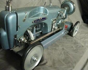 En 1851, Isaac Merritt Singer, un maquinista de Boston, Massachusetts, introdujo la primera máquina de coser a escala para uso doméstico. La patente se publicó 30 de mayo 1854. Aunque las primeras máquinas Singer se basan en el concepto de Howe, más tarde se patentó el brazo rígido y una barra vertical para mantener el paño contra el movimiento ascendente de la aguja.